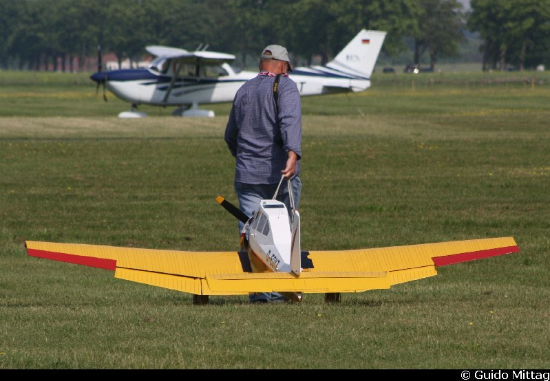 Manche Modellflieger sind aber auch ohne Hund mit ihren Flugzeugen gassi gegangen.