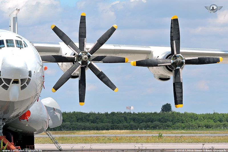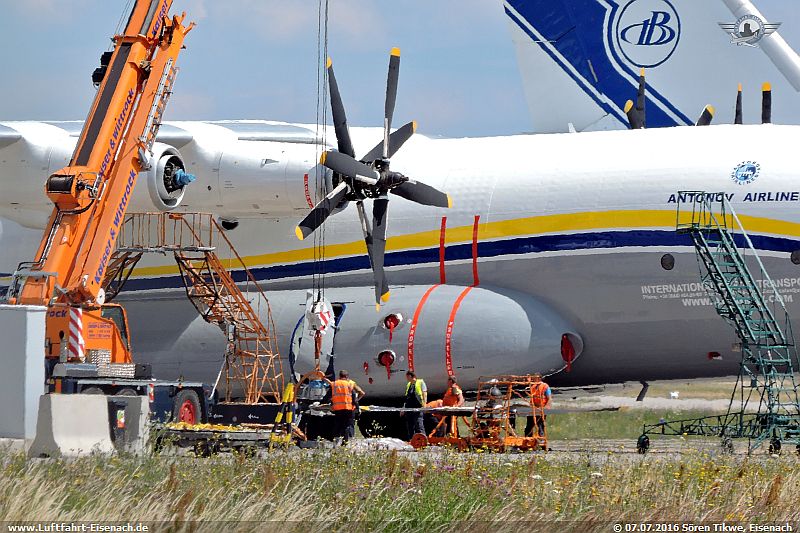 Offenbar ist es so, das es Systemunterstüzung für das Kusnetzow NK-12 und/oder den dazugehörigen Propellern ausschliesslich in Russland gibt, da dort der Hersteller sitzt und man hier ebenfalls 5 AN-22A sowie eine ganze Reihe Tupolew TU-95 betreibt, die ebenfalls dieses Triebwerk verwenden. In der Ukraine gibt es nur die UR-09307 mit einem NK-12. Da es bekanntlich Spannungen zwischen Russland und der Ukraine gibt, werden diese Arbeiten nun auf neutralem Gebiet in Leipzig durch die russische Firma Volga-Dnepr-Technik erledigt.