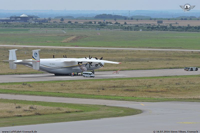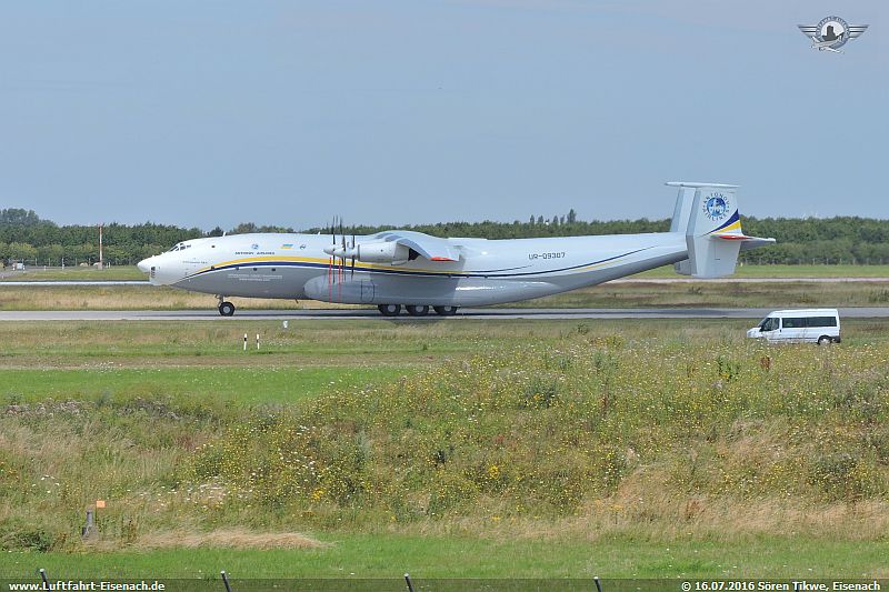Einige Tage zuvor geisterte die Meldung herum, dass wohl am 16.07.2016 ein Testflug nach der Propellerwartung duchgeführt wird. Dafür sprach der Umstand, dass die Maschine wieder vollständig über ihre Propeller verfügte. Da Ferien sind, versuchte ich mein Glück und stiegt am Samstag zeitig in den Zug nach Leipzig. Als ich nach 3 Stunden am Flughafen ankam, war man schon am Flugzeug zugange. Und es wurde ein Krimi. Es geisterten diverse verschiedene Flugzeiten herum. Zudem verschiedene Flugdauern. Aber, letztendlich flog die UR-09307 tatsächlich, auch wenn es am Ende wohl noch ein paar Probleme geben wird.