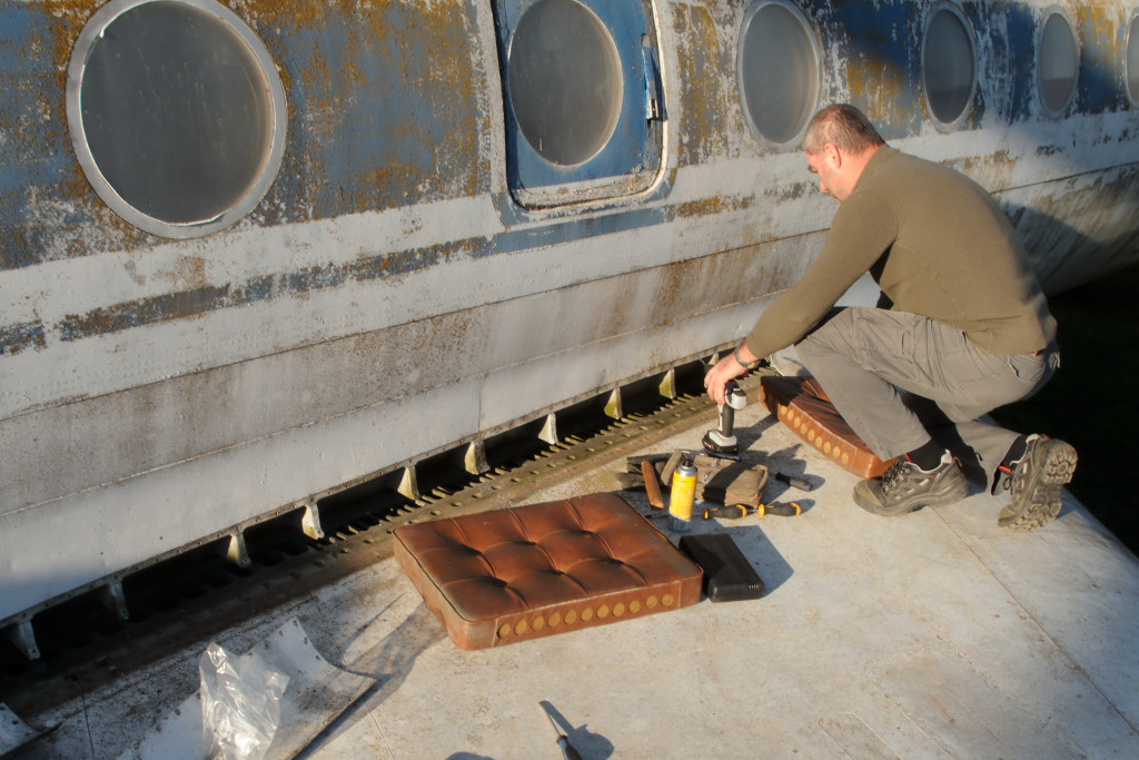 Man könnte denken, das ist Arbeit in einer Schmiede und nicht am Luftfahrzeug. Und das ganze Eisen fliegt auch noch, in einem Schiff zählte es zu Ballast.
