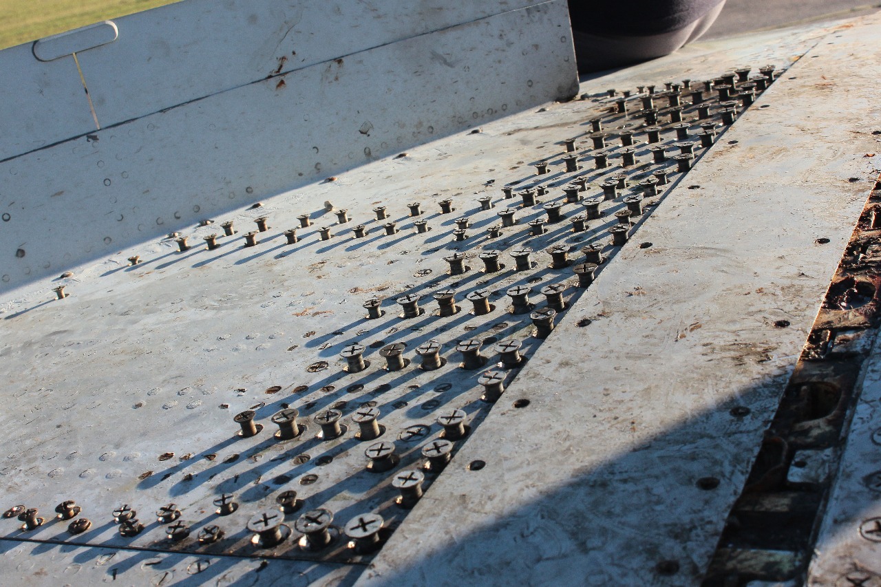 So, der nächste Arbeitseinsatz am Flieger ist- diesmal allerdings ohne meine Beteiligung geschafft. Unterdessen hat der Flieger schon diverses seiner grünen Naturfarbe verloren und prangt wieder in hellgrauer Farbschönheit. Was Wasser und Farbe so anrichten können...