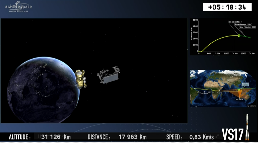 Nach 05:18 Stunden Separation Fregat / SES-15 in 31.126 Km Höhe