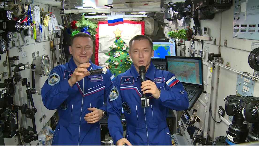 Sergei Rishikow und (Mikro fliegt hin...) Sergei Kud-Swertschkow (...und zurück)