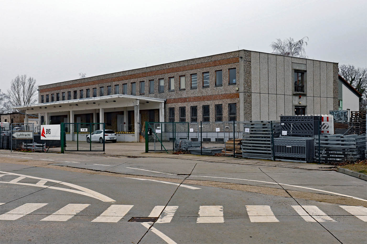 Das Gebäude rechts oben könnte das Verwaltungsgebäude des INTERFLUG-Betriebes Agrargflug gewesen sein. Darin war eine Etage mit besonderer Zugangssicherung versehen und vom Ministerium für Staatssicherheit belegt.