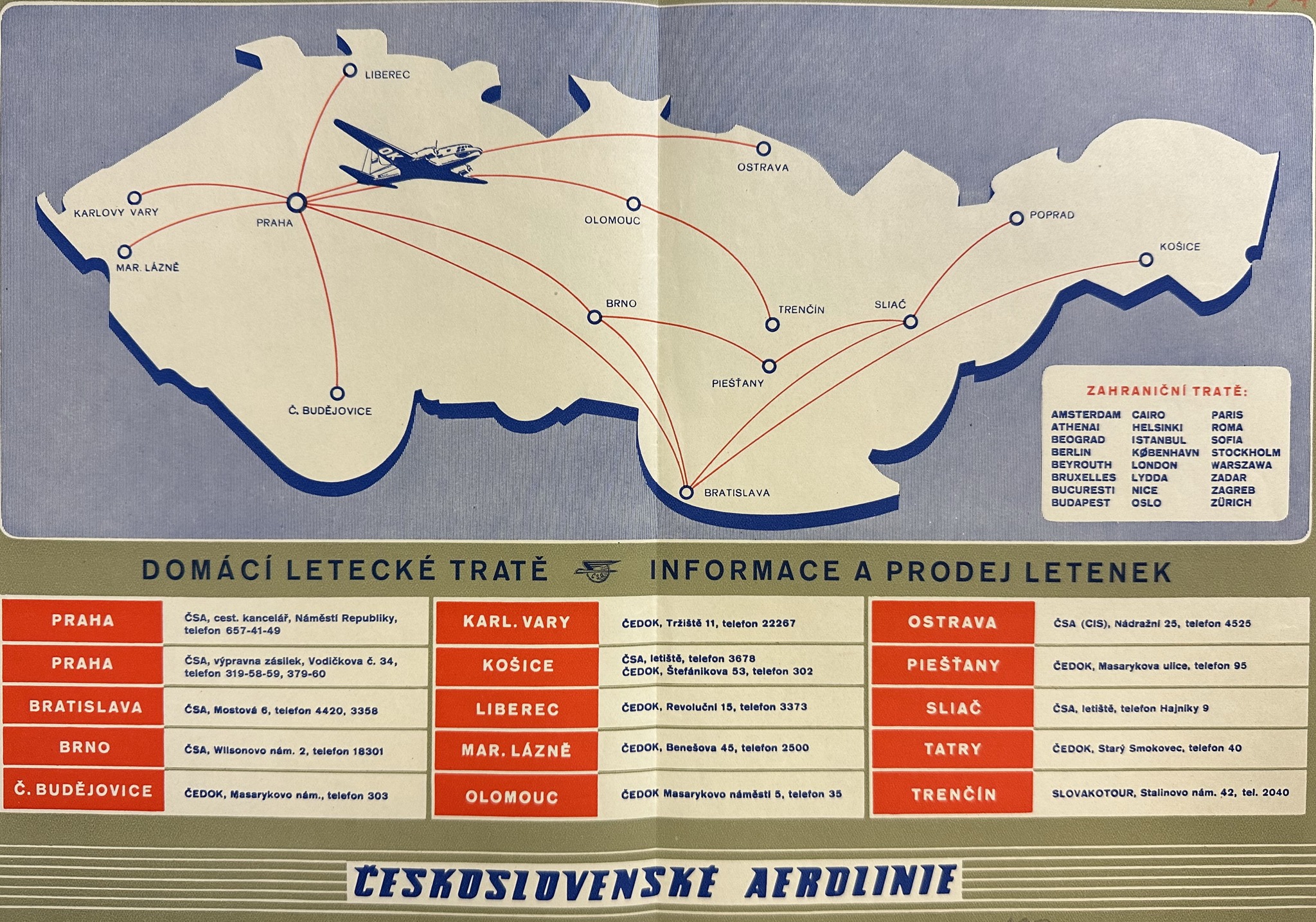 Übersichtskarte tschechoslowakisches Inlandflugnetz