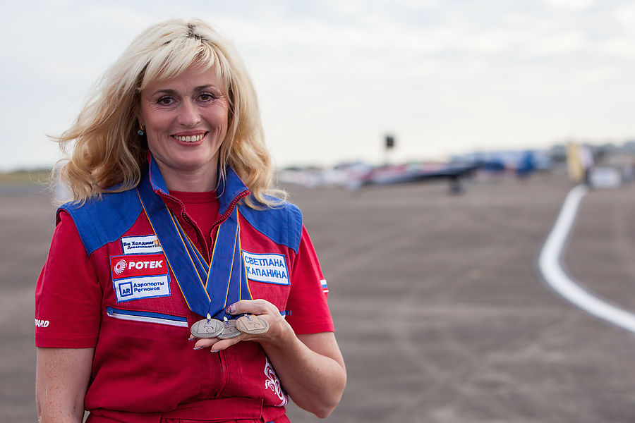 Sie stellte mit ihrer Maschine, eine sogen."Extra-330" (Экстра-330") - Reg. DOSAAF - ein Freiflugprogramm vor, das klassische und unkontrollierte (классических и неуправляемых вращений) Rotationen mit Rauch kombiniert. Wie sie sagte, bereite sie sich "wahrscheinlich seit 30 Jahren" auf dieses Programm vor"