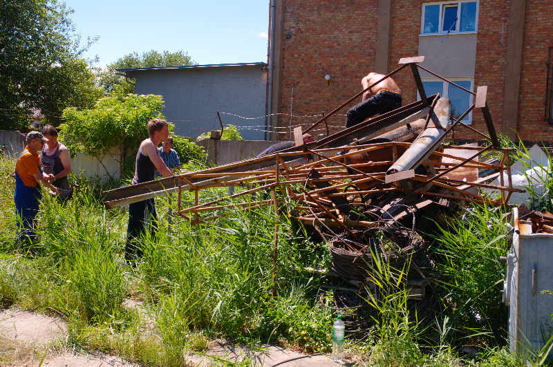 Intensive Sonneneinstrahlung macht den Einsatz von Arbeitsschutzmitteln dringend notwendig, auch wenn diese zuvor auf oben genanntem Schrottplatz recycled werden mußten.