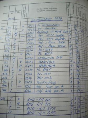 Hier mal einige Ausschnitte aus einem originalen Flugbuch eines MiG - 21 Piloten aus dem Jg - 2 ! Da ist keine Taktische Nummer erkennbar 1