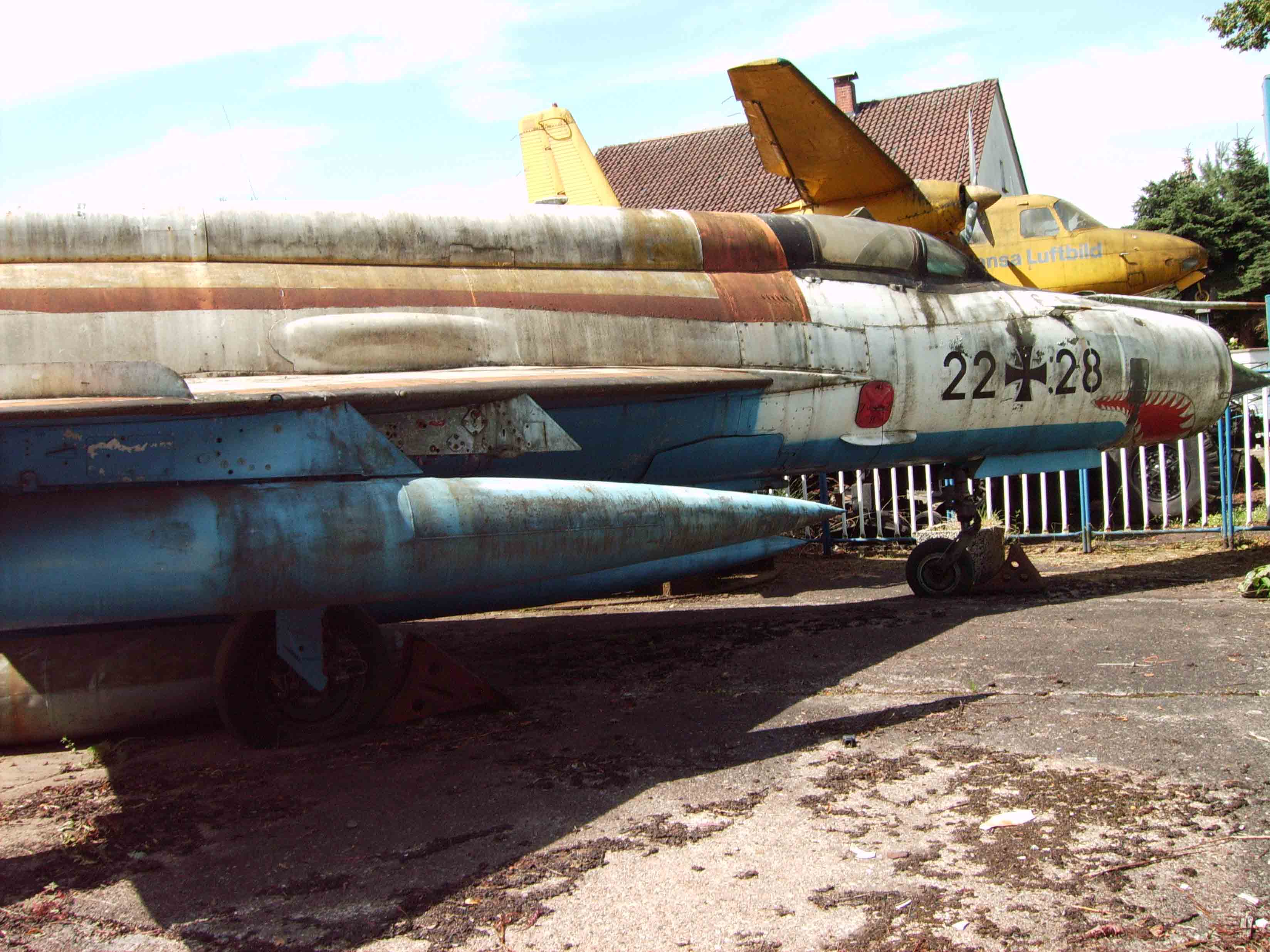 Ich habe mir jedesmal, wenn ich die Flugzeuge von der A2 gesehen habe, vorgenommen dort mal vorbeizuschauen und heute hab ich es endlich mal geschaft. Als ich am Museum(ich werd es einfach mal so nennen, auch wenns keins ist) angekommen bin musste ich feststellen, dass es nicht geöffnet war. An der Tür hing ein Schild, dass es wegen Umbauarbeiten bis Ende 2009 geschlossen ist. Ich konnte von Umbauarbeiten nichts erkennen und ein weiterer Besucher, der umsonst gekommen war, sagte, dass schon Mitte letzten Jahres ein ähnliches Schild an der Tür hing. Naja, ins Museum rein wollte ich eh nicht........