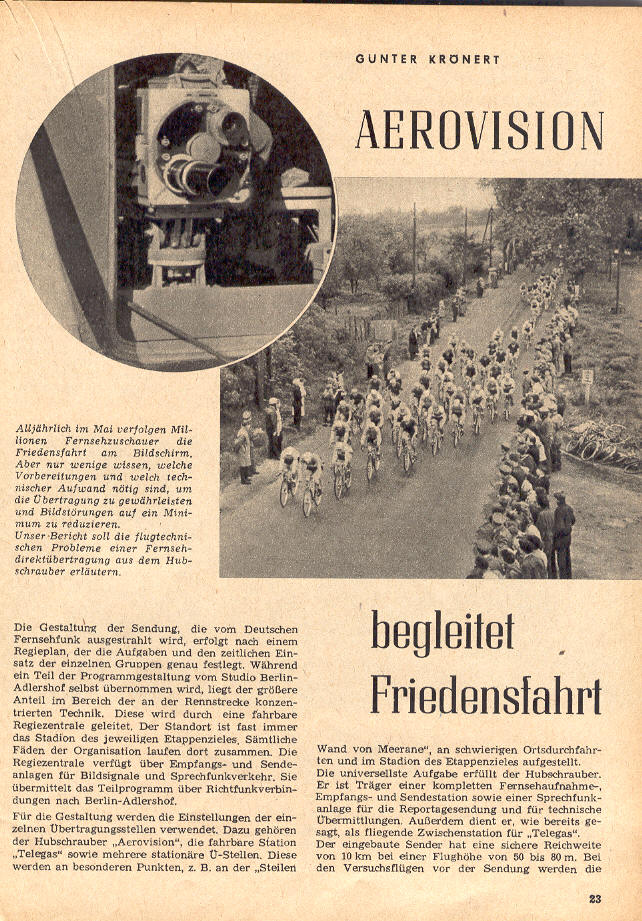 Spezialflug bei der Friedensfahrt
