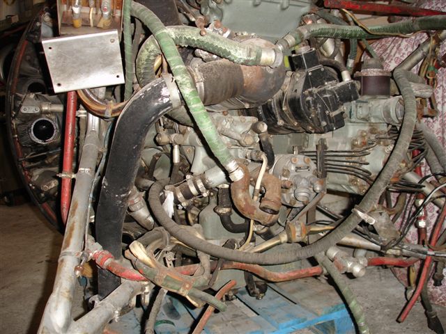 nachdem der Motor seinen platz in der Garage gefunden hatte erst einmal alle Leitungen und Schläuche abbauen damit