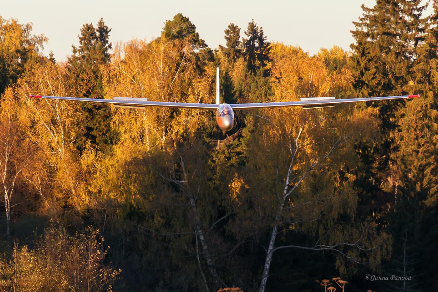 der Blanic RA-0631A am Haken der Wilga RA-2812G - ein gelungener Schnappschuß! und wenn jemand passend zur Jahreszeit ein besonderes Herbstmotiv braucht - hier ist eins, mit dem Blanic RA-0374A im Landeanflug