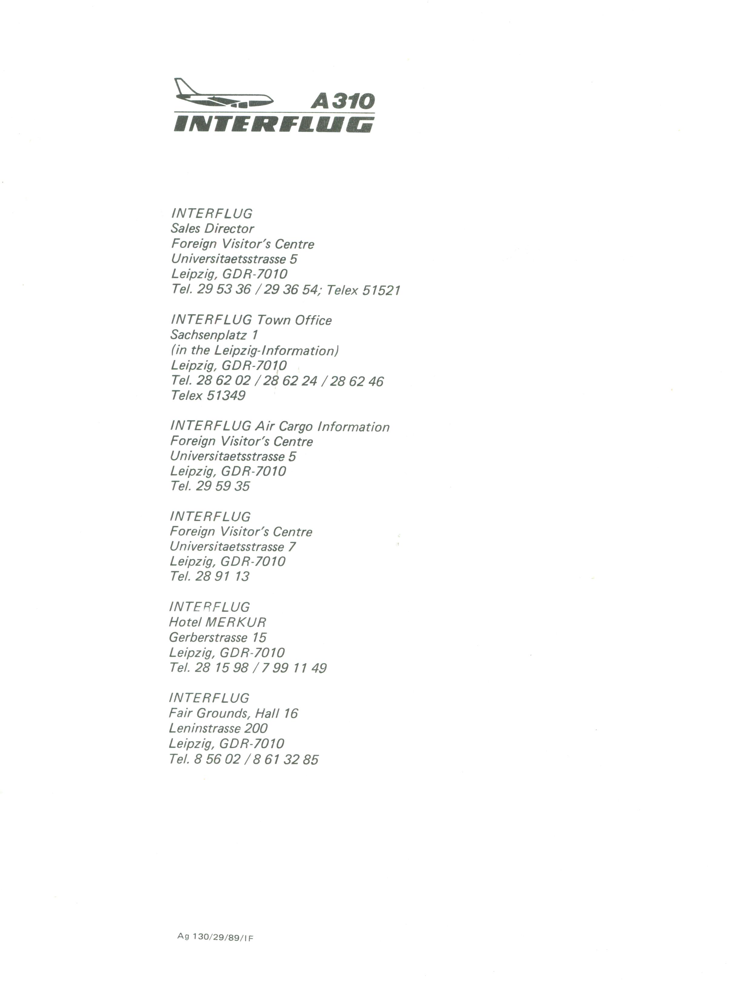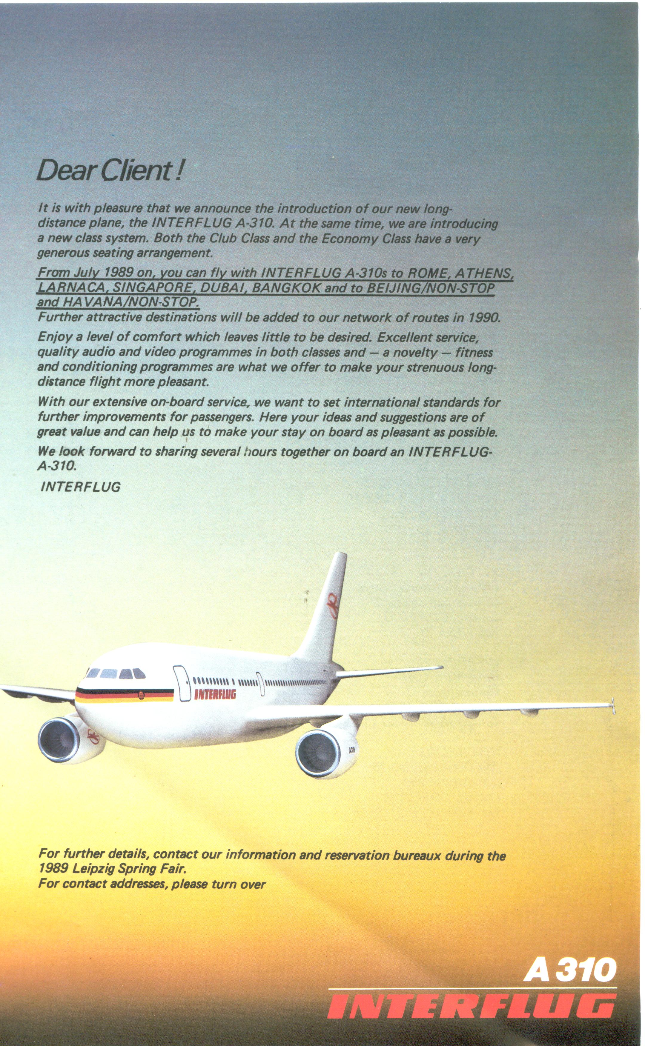 Reklameblatt in DIN A4 Größe zur Einführung der Airbus 310 Flugdienste bei der INTERFLUG.