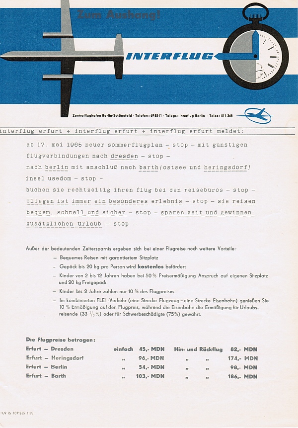 Re: Infoblätter/Reklame/Plakate/Broschüren der INTERFLUG