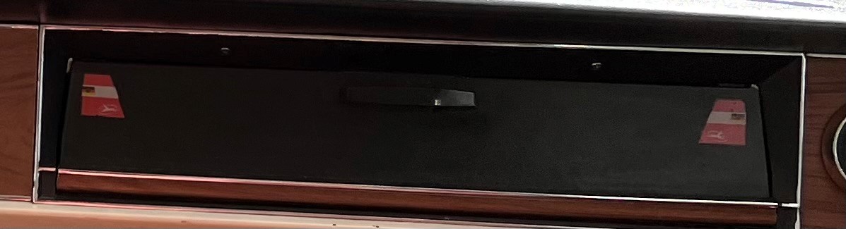 Außerdem befinden sich auf der Klappe des Handschuhfachs auf der rechten und linken Seite 2 kleine Aufkleber der Interflug (siehe Bild). Diese sehen sehr alt aus und sollen wohl aus der Zeit der Interflugtätigkeit stammen.
