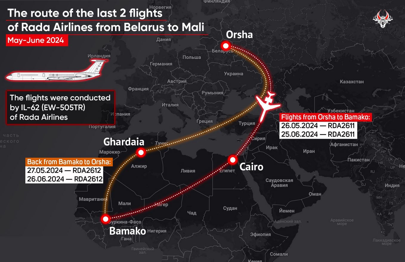 Wir erinnern daran, dass die übrigen Söldner des PMC Wagner in Mali (und in Weißrussland) stationiert sind. Zuvor, im Oktober-November 2023, stellten wir den möglichen Transport von Hab und Gut der Söldner aus dem Lager im Dorf Tsel über den Militärflugplatz Babruisk nach Bamako fest. Damals wurde dies von der russischen Fluggesellschaft AbakanAir durchgeführt.