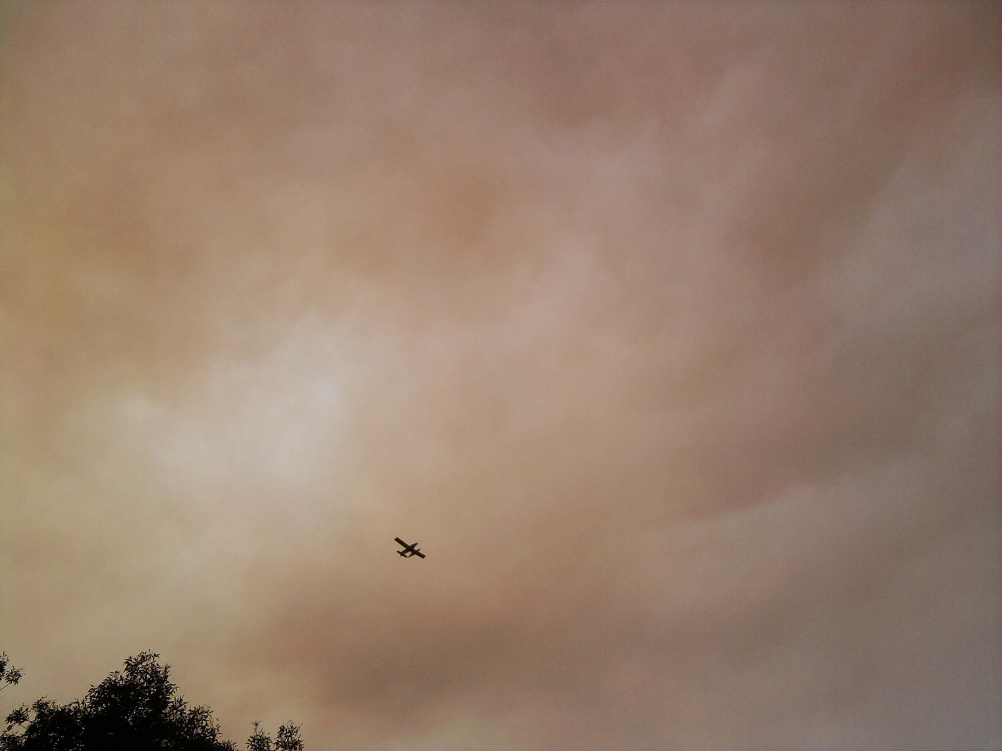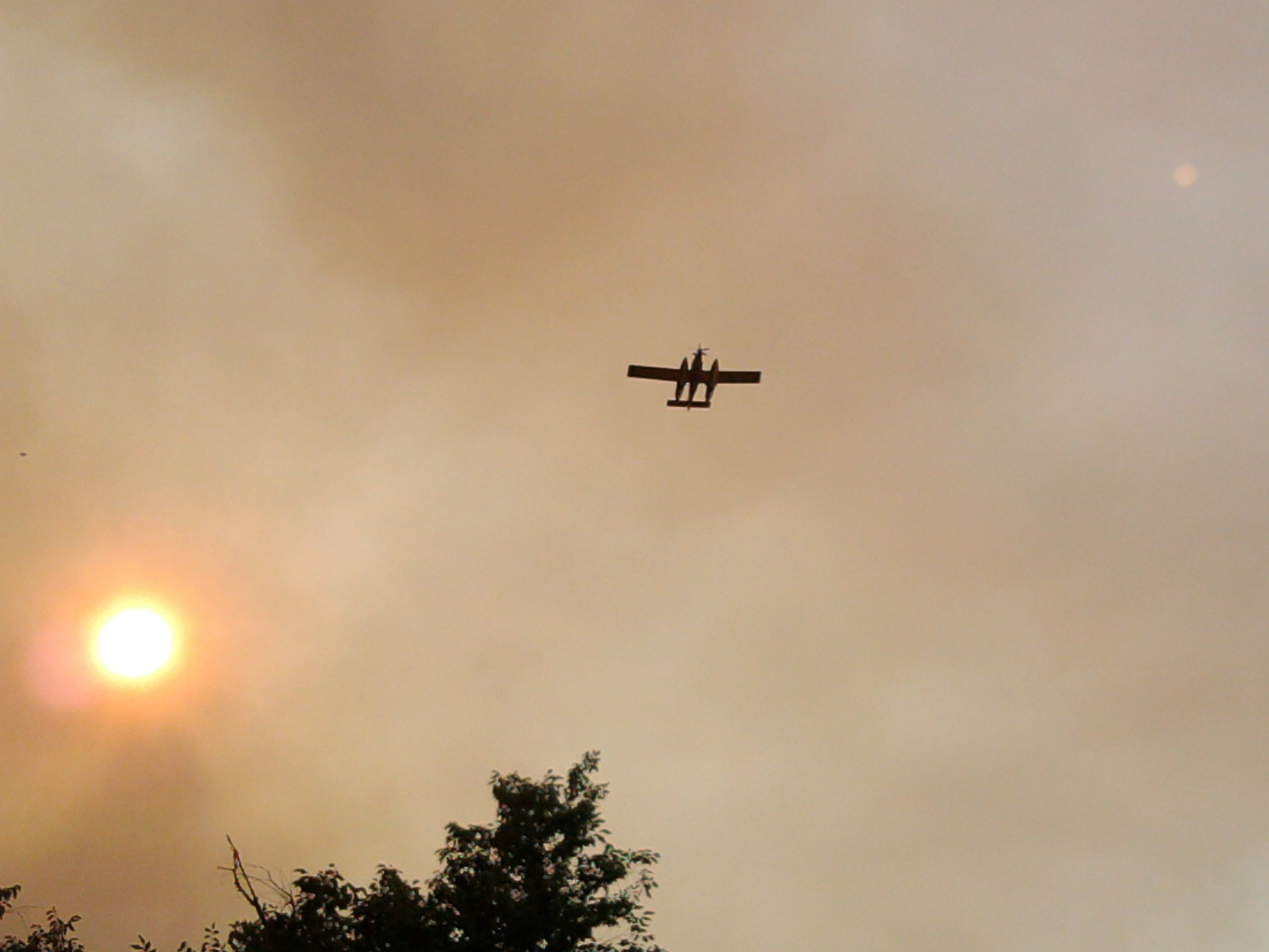 Seit Gestern ist es bei uns um die 40 Grad. Heute Nachmittag sah der Himmel komisch aus. Nun weiss ich warum. Die Spanier sind uns zur Hilfe geeilt mit 2 Air Tractor.