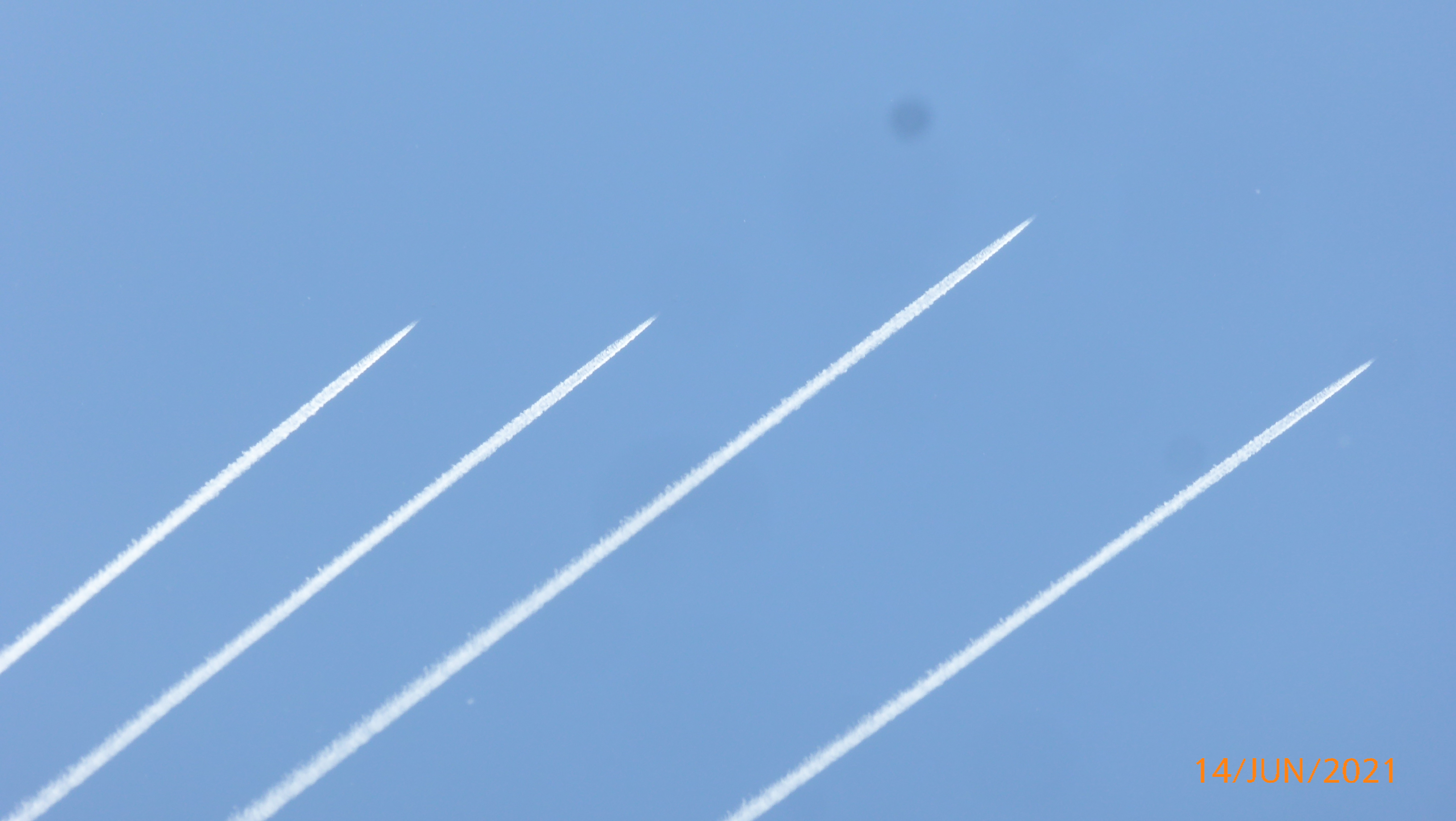 Leider reichte meine Tele nicht aus um die Maschinen zu erkennen.Bei der unscharfen Vergrößerung am PC kann man erkennen, dass es Miitärjets waren.