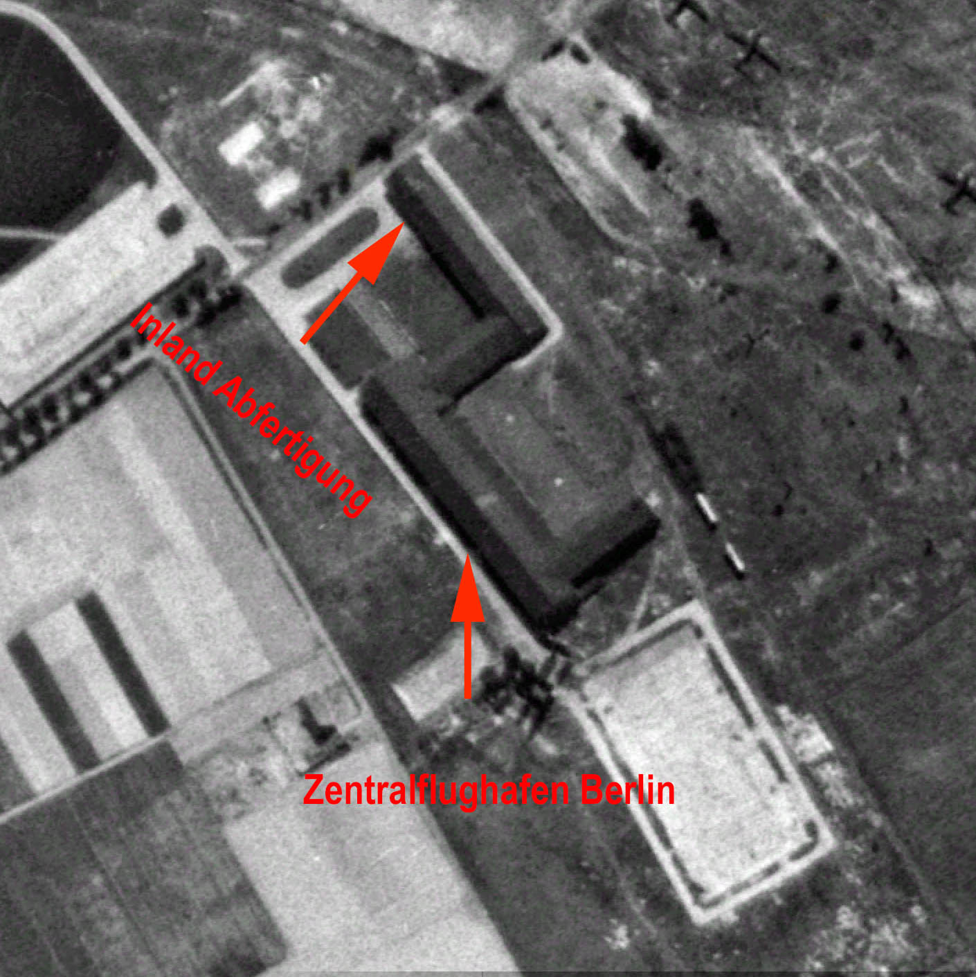 Es zeigt die Abfertigung in Schönefeld, wie ich sie ebenfalls im Gedächtnis habe. Nur ist hier alles zweistöckig! Trotzdem scheint mir die Ecke die selbe, wie auf dem Bild von ...quax. Links vom Gebäude geht es zur Kontrollstelle, dahinter ist dann die Ampel der Ringstraße zum Überqueren des Taxiway. Passt aber alles auch zu meinem Foto. Wer kann mir auf die Sprünge helfen?