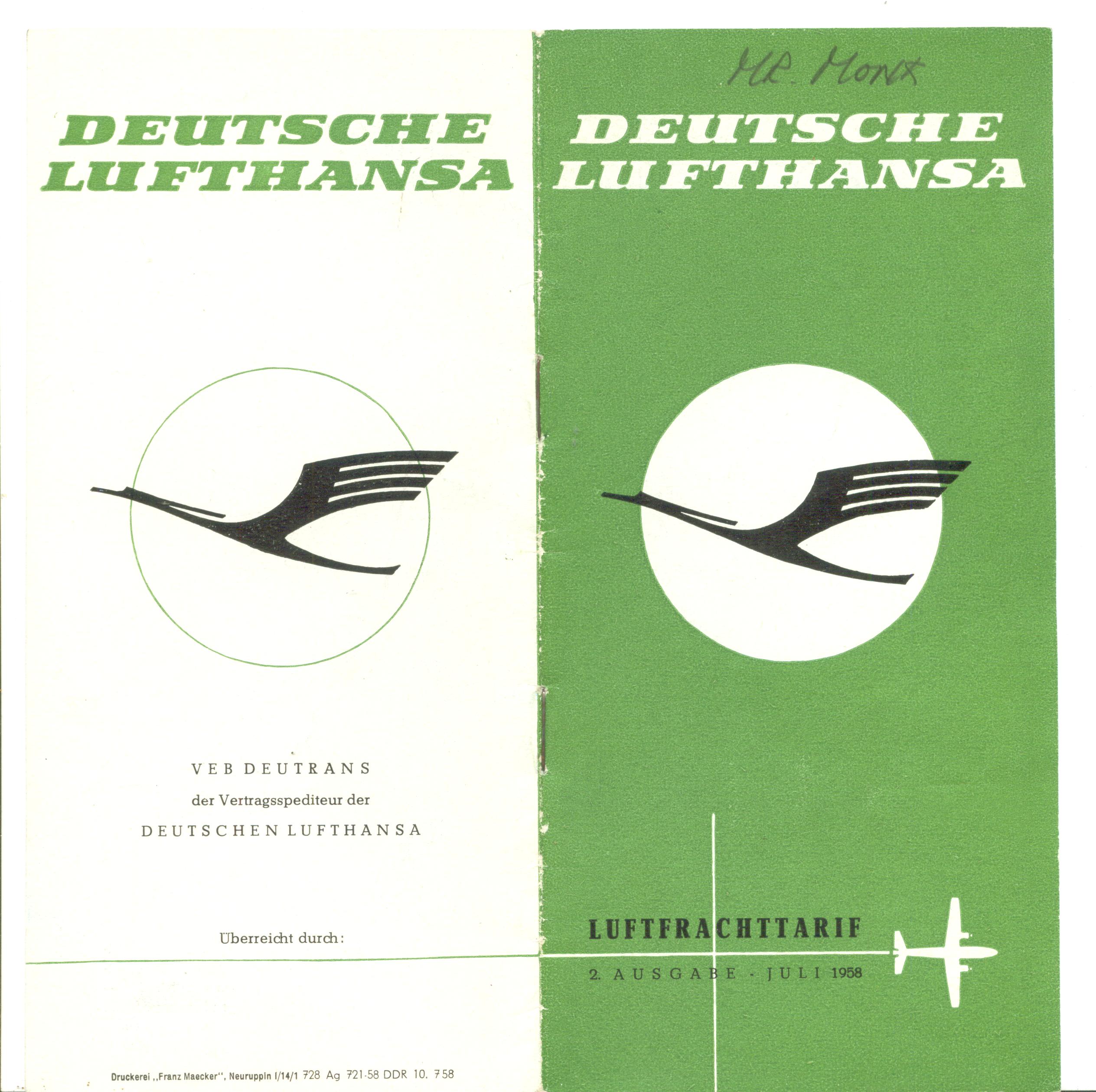 Sehr seltenes Exemplar einer "Luftfrachttarifinformationsbroschüre" DEUTSCHE LUFTHANSA der DDR.