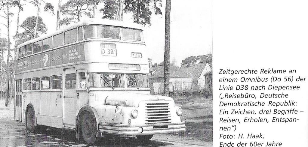 In seinem Buch findet sich ein Foto von einem Doppeldecker Bus mit der Liniennummer D38 und dem Zielschild Diepensee. Die Frage ist nur, wann genau das war. Die Linienführung und -bezeichnung hat sich ja offensichtlich mehrfach geändert.