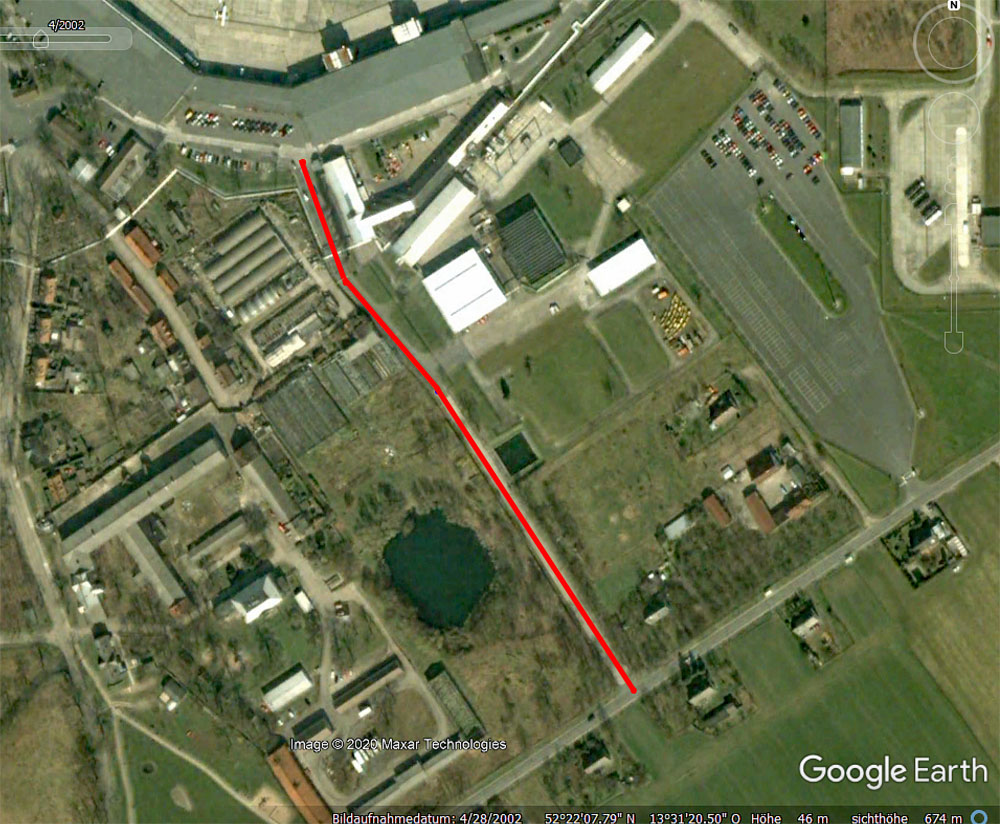 Kilo Mike Sierra hat geschrieben:Die Linie wurde dazu über eine extra neu gebaute Straße (heute Georg-Wulf-Straße) direkt zum Abfertigungsgebäude geführt, von dort wieder zurück zur Hauptstraße und dann weiter nach Waltersdorf.