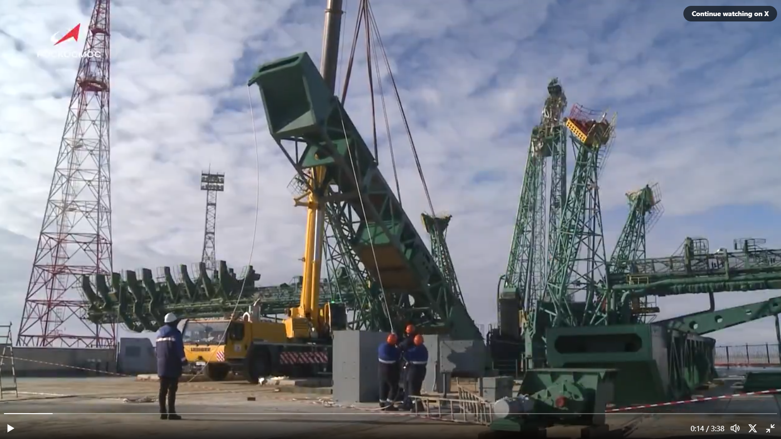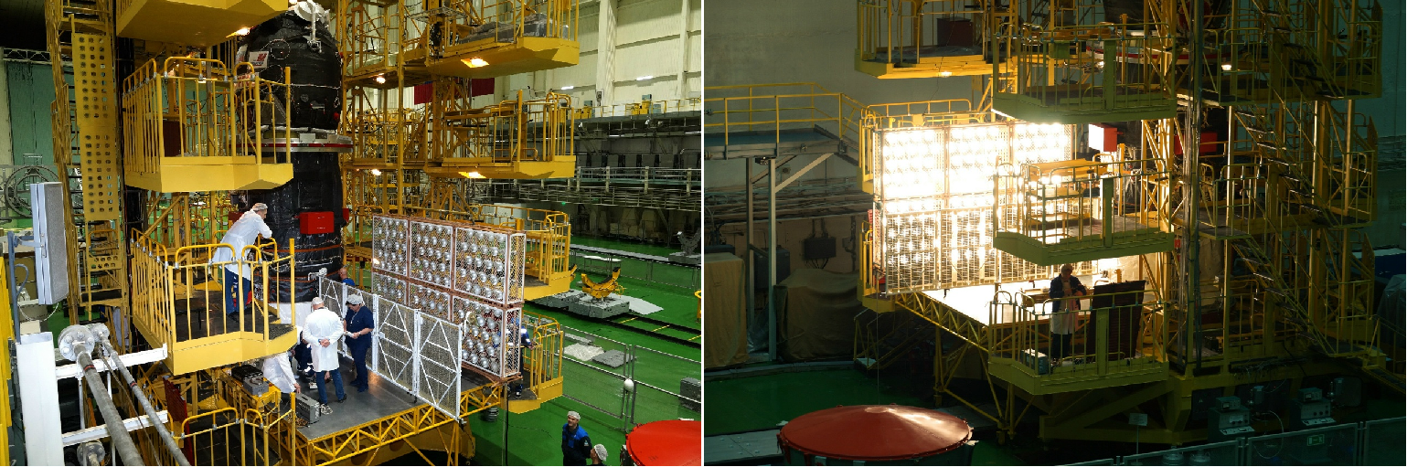 Im MIK in Baikonur wird das Transportraumschiff aktiv für seine Mission zur ISS vorbereitet.