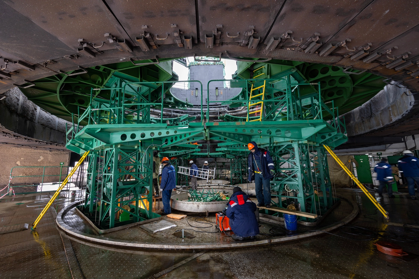 Die schwierigste Aufgabe dabei war die Installation einiger Teile der Kabine mit einer Länge von 19 m und einem Gewicht von ~ 17 t, die durch die Startöffnung installiert wurden mit einer speziell entwickelten Technik (übrigens alles bei tiefstem Winterwetter!)
