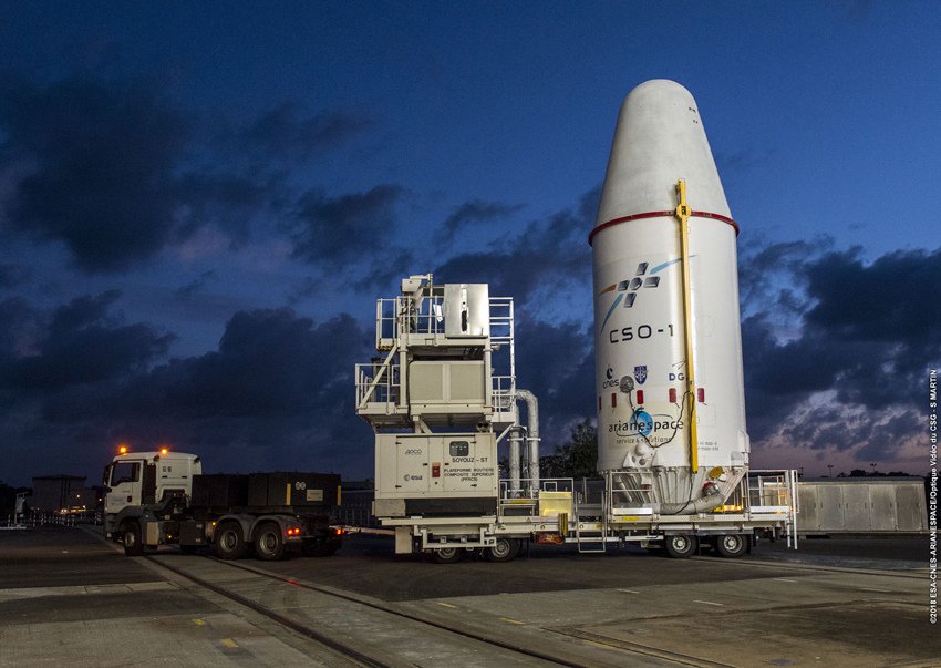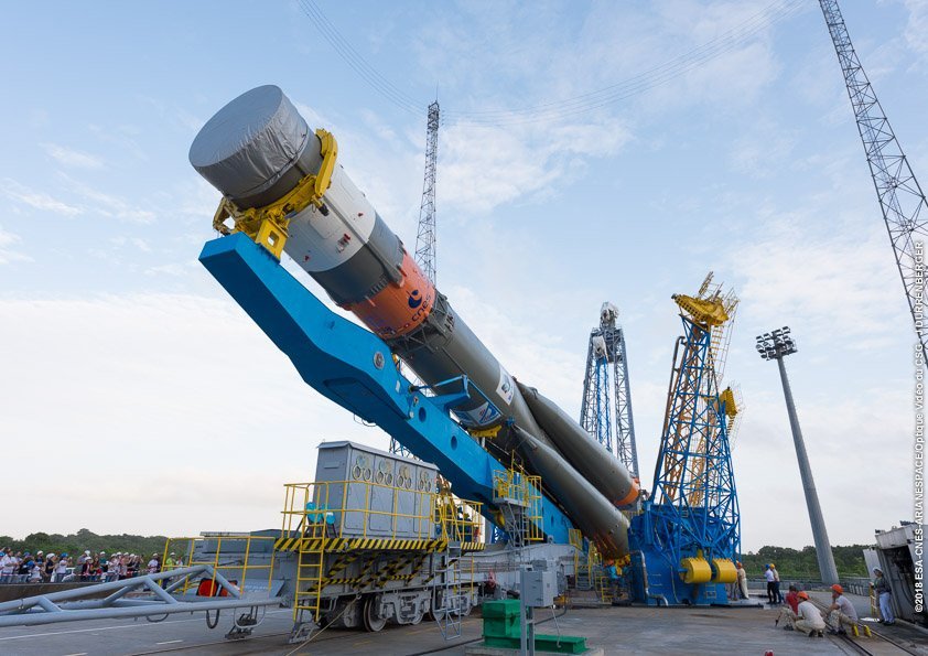 Für den Start der Mission VS-20 am 18. Dezember in Kourou wurde der "Sojus"-Träger ST-A am Pad am 14. 12. aufgerichtet nach Meldungen der ESA, Roskosmos … https://twitter.com/roscosmos