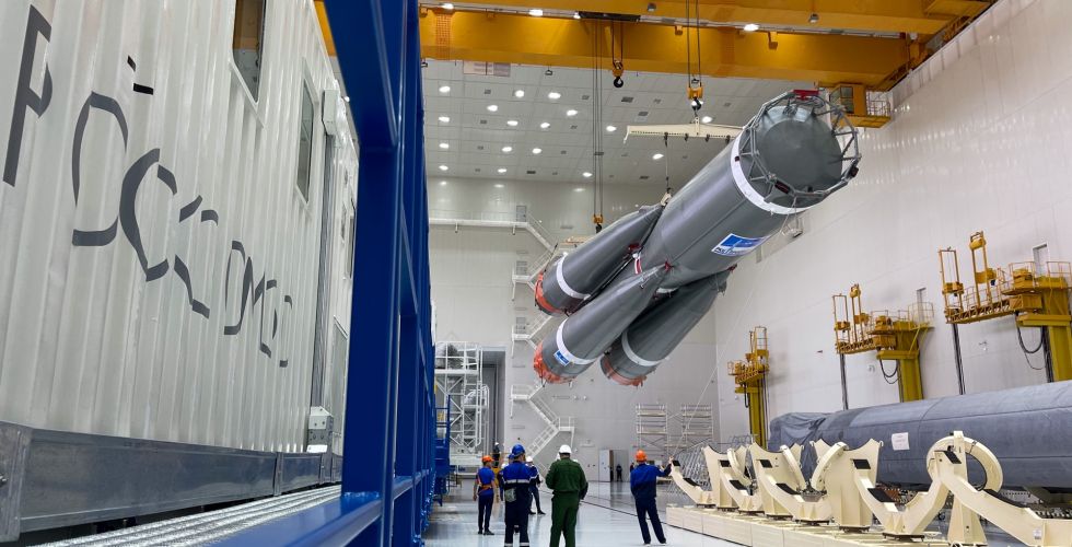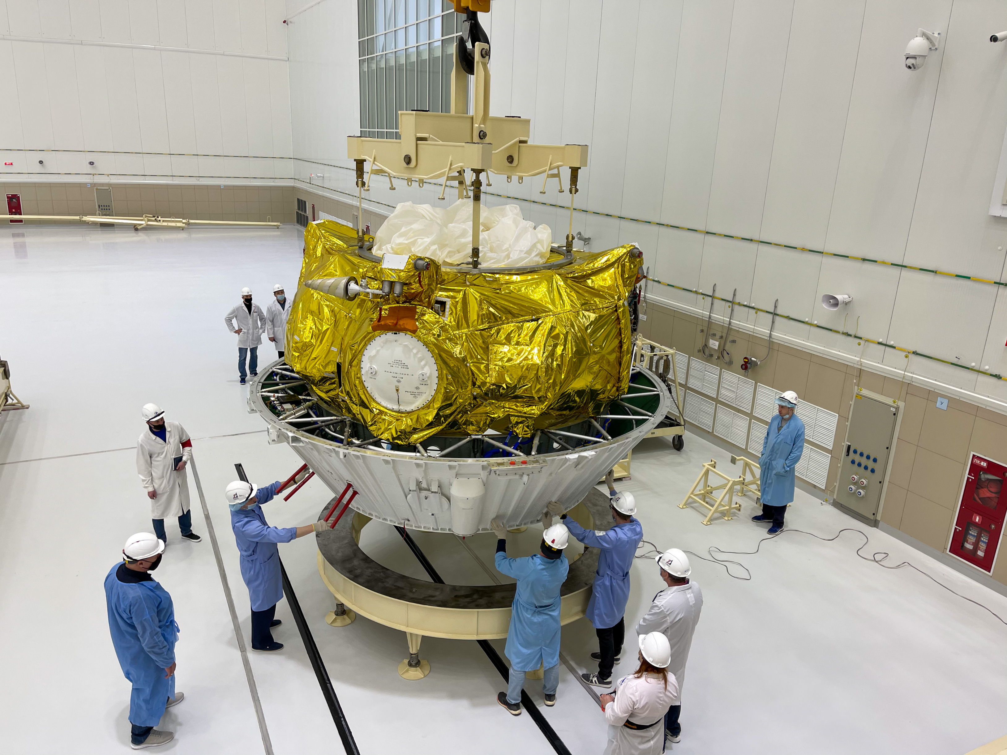 EIn paar Detailsplitter noch zur Montage - hier die Fregat-Oberstufe nach der Betankung "am Haken" zurück zum MIK Q.: https://www.roscosmos.ru/31050/