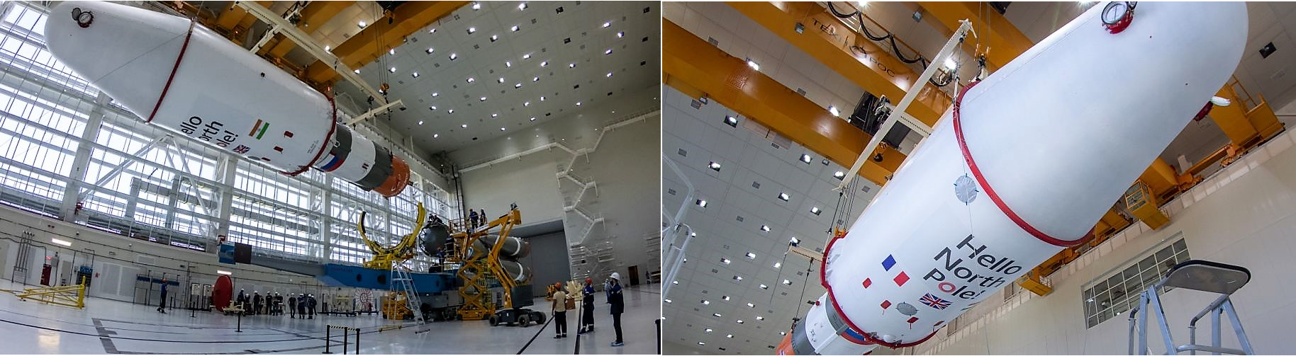 Die Bildergalerie der Montage des Paketes Progress MS-17 / Träger finden wir zusammengefaßt hier bei RSC Energija News mit der Beschlußfassung der staatlichen Kommission zum RollOut und Aufstellen auf dem Startplatz:
