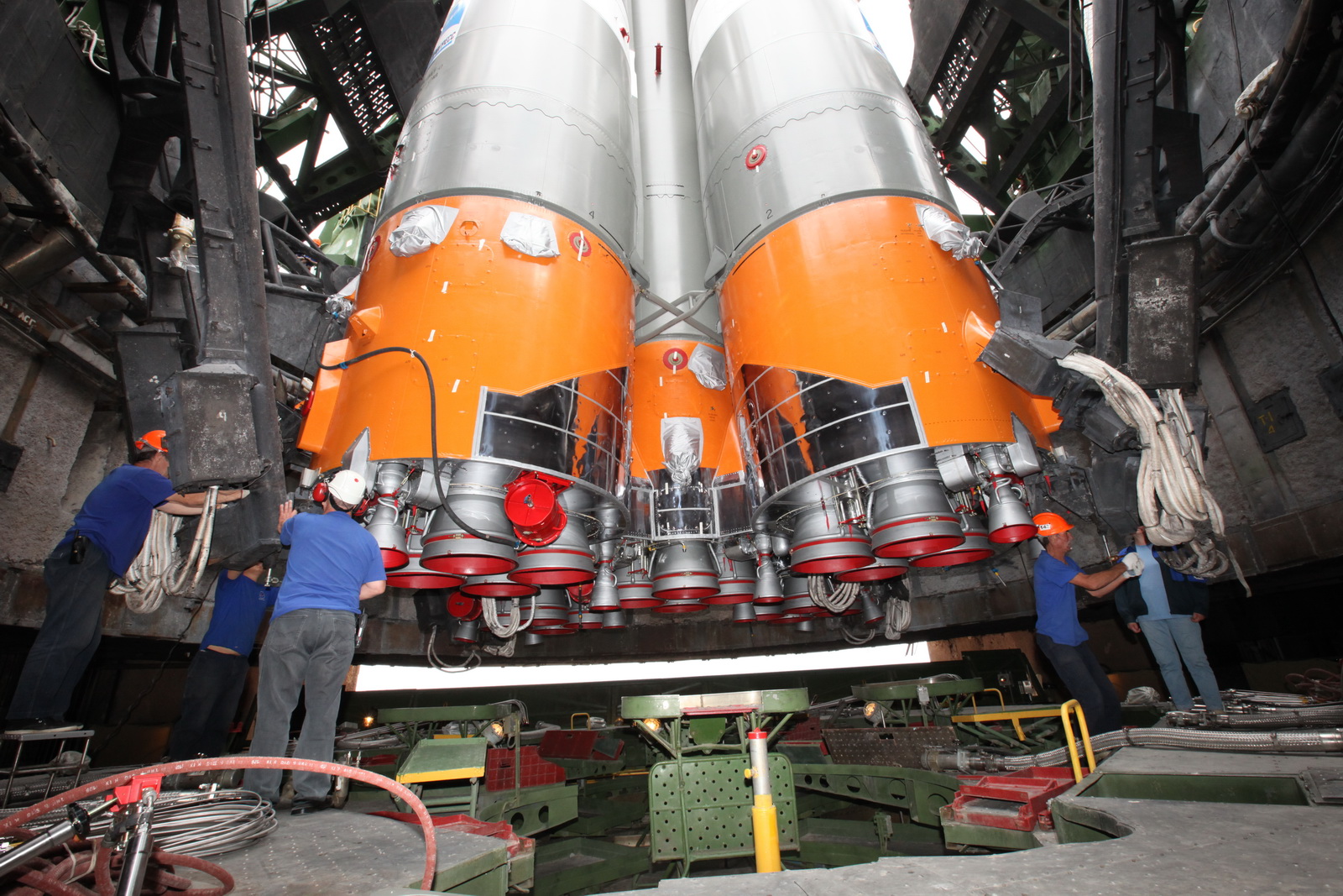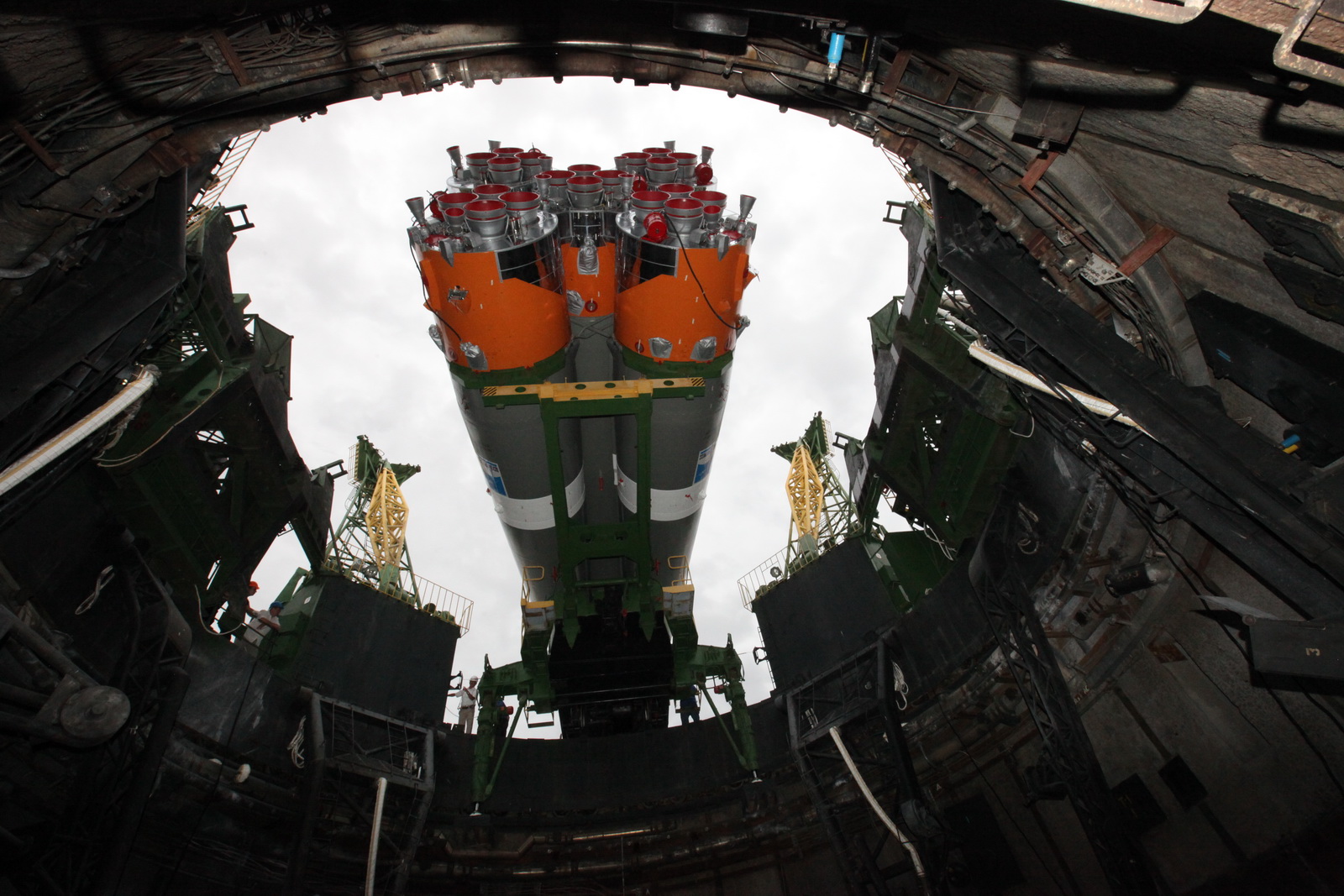 so auch Aufnahmen aus dem Inneren des Pads -6 beim Aufrichten der Sojus-2-1.a - so noch nicht gesehen: