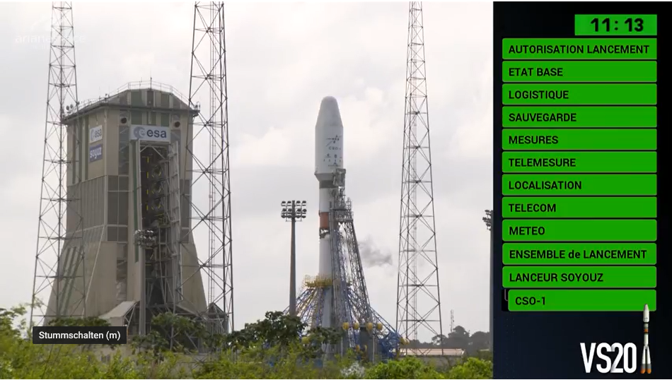 Heute hebt "Sojus" in Kourou eine französische Nutzlast in den Orbit - in der Mission VS-20 den optischen Aufklärungssatellit CSO-1 (Composante Spatiale Optique-1