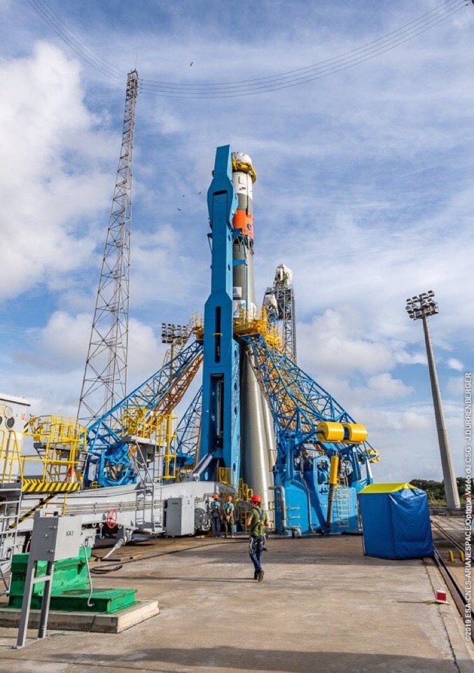Die "Sojus-ST" wartet auf ihre Nutzlast und hier kommt sie schon Für die Nutzlast stellt CNES eine ganze Galerie auf flickr bereit - https://www.flickr.com/photos/cnes/ ,