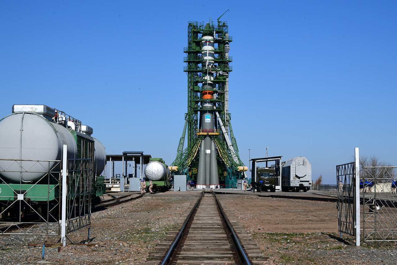 Gestern, am 01. April erfolgte das "Rausfahren und Aufrichten" des Sojus 2.1a - Trägers mit dem Raumschiff "Progress-11" zum (Doppel)Start am 04.04. - Progress in Baikonur .