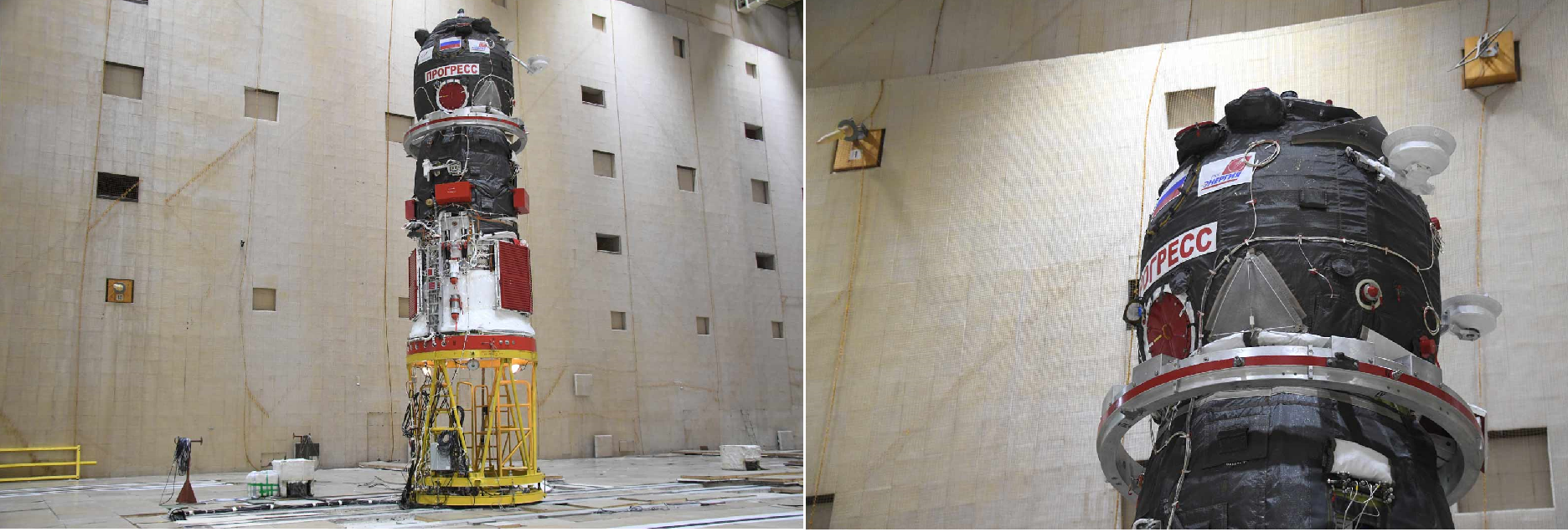 Die schallabsorbierende Kammer des technischen Komplexes ist ein spezialisierter Raum, der von innen mit einem radioabsorbierenden Material bedeckt ist, um die Bedingungen des Weltraums zu simulieren. In den nächsten Tagen werden Spezialisten von RSC Energia und Yuzhny CC bodengestützte Operationen durchführen, um die Funktion der bordeigenen Funkausrüstung für Rendezvous und Docking des Progress MS-21 TGC zu überprüfen "...