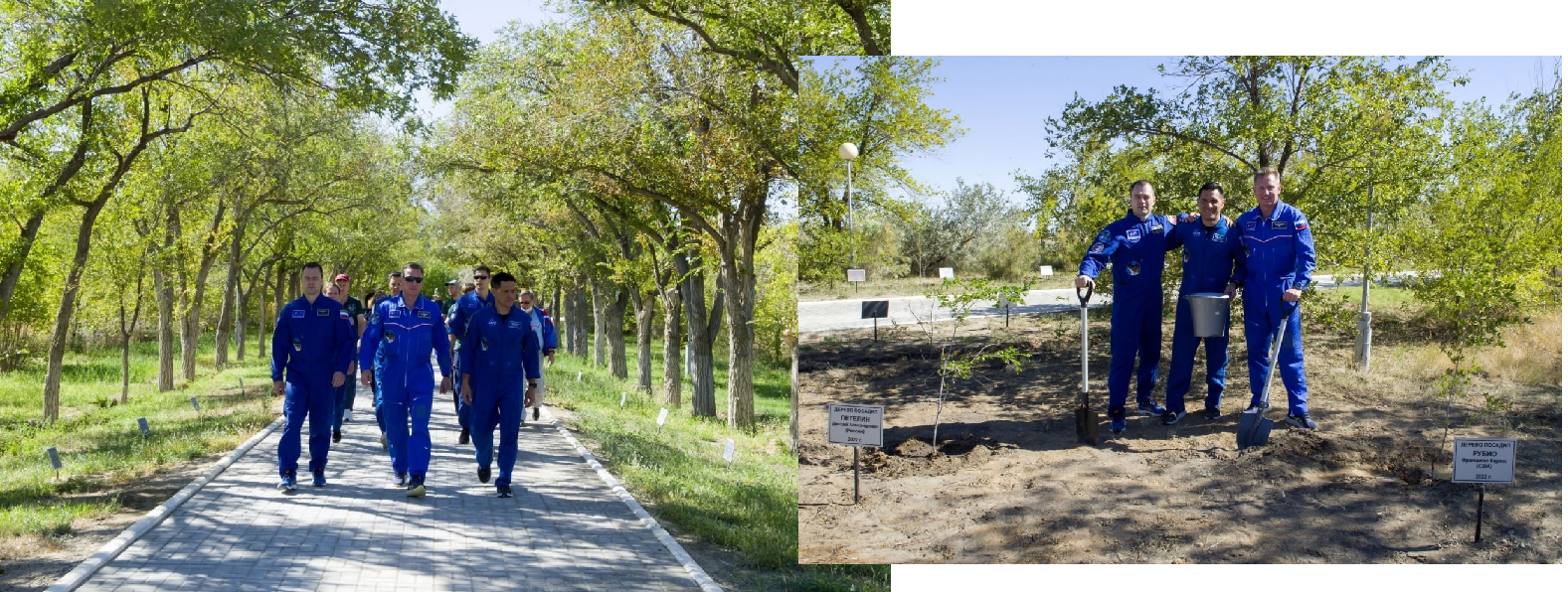 Die Mitglieder der Hauptbesatzung, die zum ersten Mal auf einen Flug gehen - Dmitry Petelin und Frank Rubio - vergessen nicht die Traditionen vor dem Flug und pflanzten gestern Setzlinge auf der "Allee der Kosmonauten".