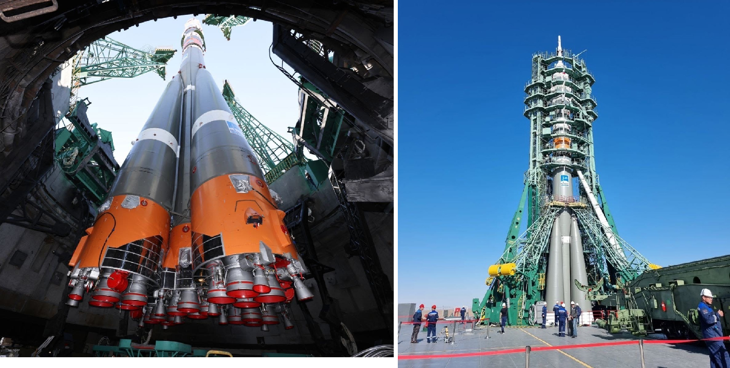 Nach dem Pressedienst Roskosmos wurde heute im Montage- und Testgebäude des St.-Ortes 31 des Kosmodroms Baikonur die Generalmontage des Sojus-2.1a- Trägers mit dem bemannten Raumschiff "Sojus MS-22" Namens K.E. Ziolkowski durchgeführt