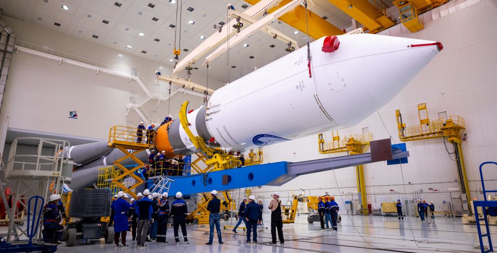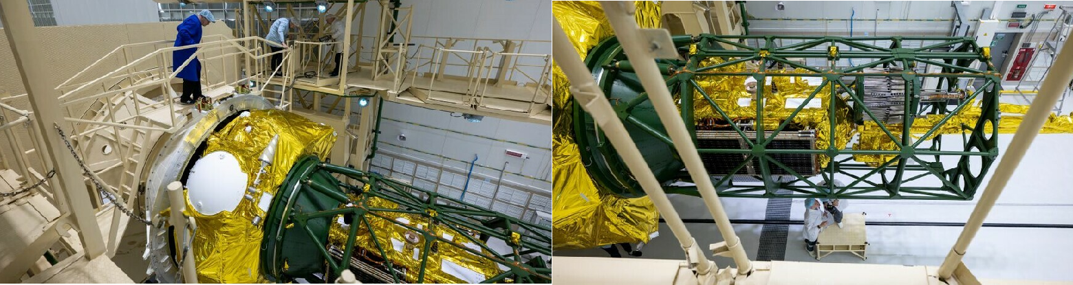 Als nächstes steht die Integration mit der 3. Stufe der Sojus an und danach die Generalmontage des "Pakets" mit dem Träger auf der Transport- und Installationseinheit und die Installation einer thermischen Abdeckung auf dem Nutzlastkopf.