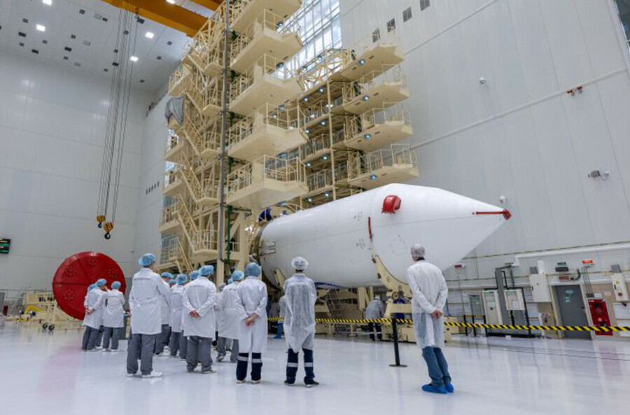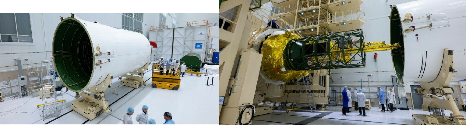 aus der Galerie Roscosmos zur Startvorbereitung - die Montage der Nutzlastverkleidung - ein paar Aufnahmen: