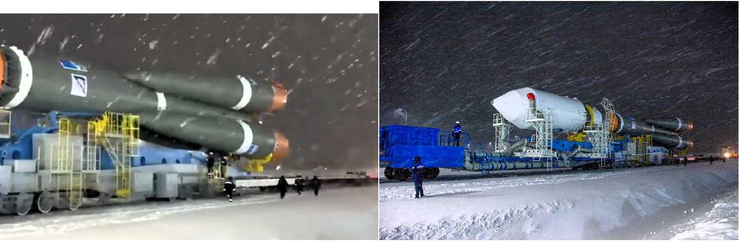 Die Anlieferung auf dem Kosmodrom erfolgte ~ Mitte September per Luft- und Straßentransport (hatte ich dann verdaddelt) u. füge es im hier mit ein: