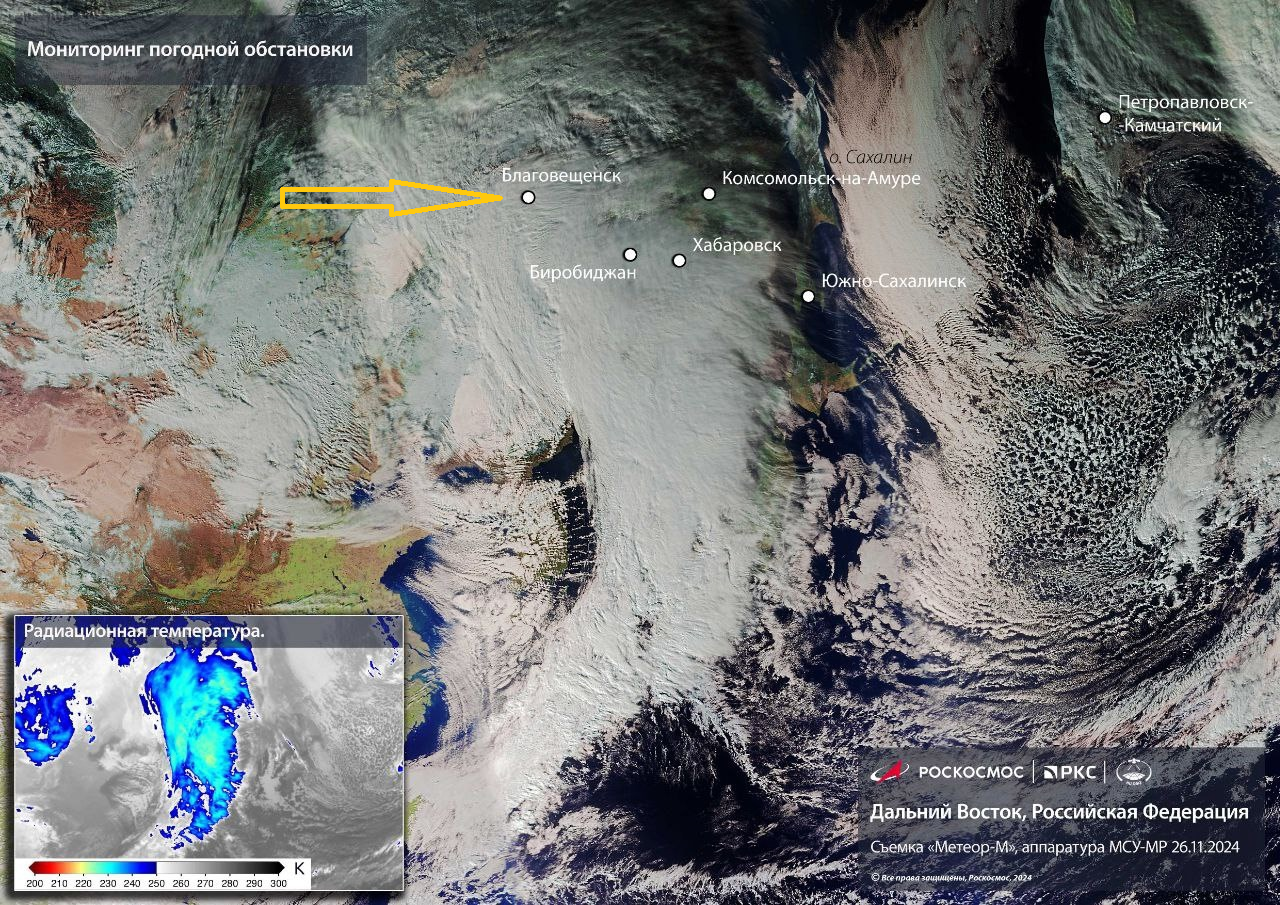 Zum Wettermonitoring: Das war der "Jahrhundert"Schneesturm (27.11.) in Fern Ost - Überwachung von Roskosmos-Satelliten "Meteor-M"