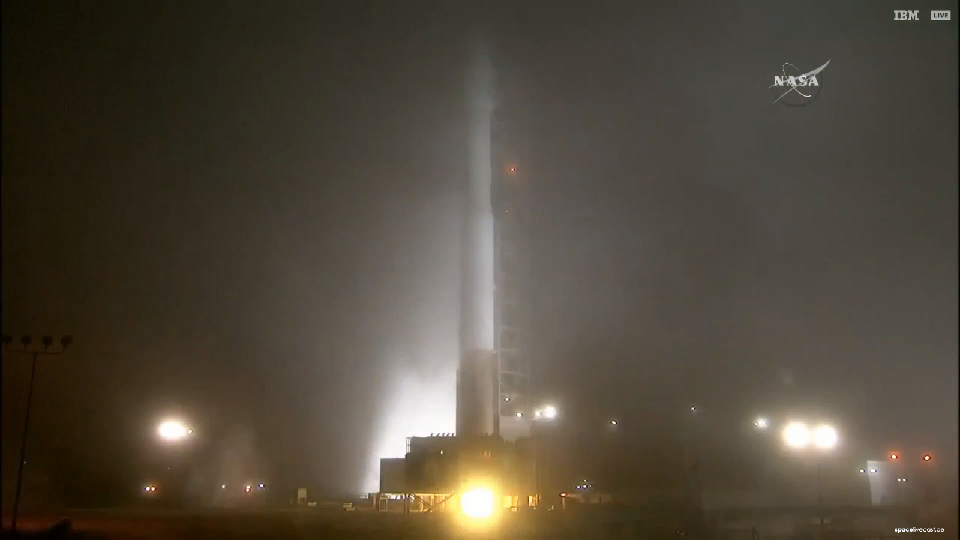 Start pünktlich auf die Sekunde trotz dickem Bodennebels in Vandenberg: Das RD - 180 zündet