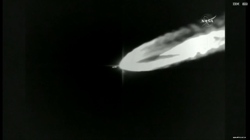 Das Brenn-Ende der ersten Stufe ist in der dynamischen infrarot-technischen Verfolgung sehr gut zu sehen,