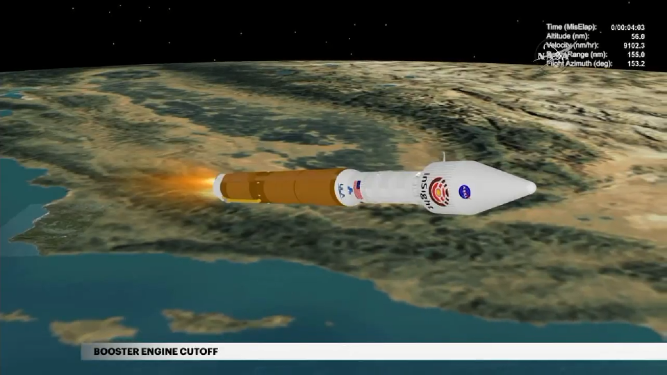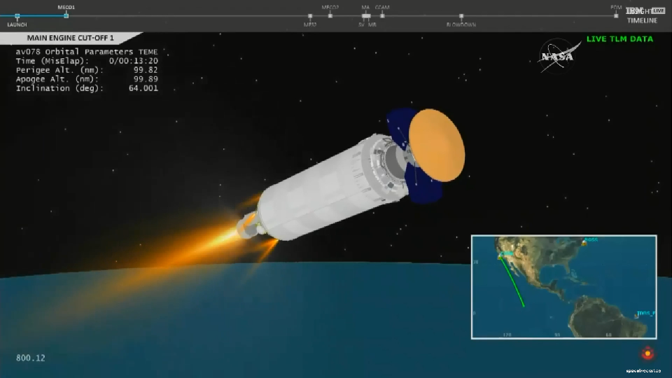 Die zweite Zündung der Centaur: und Cut-off 2 zum Aussetzten der Cubesats (Time rechts oben)