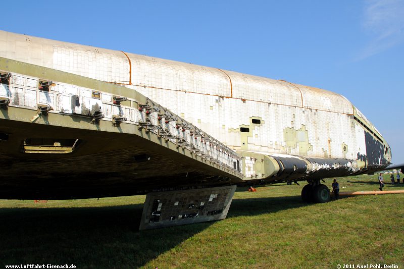 Nicht flugfähiger Prototyp Tragflächen und Seitenleitwerk für Strukturtests und Wärmeerprobung. Reste der Raumfähre befinden sich im Testzentrum der russischen