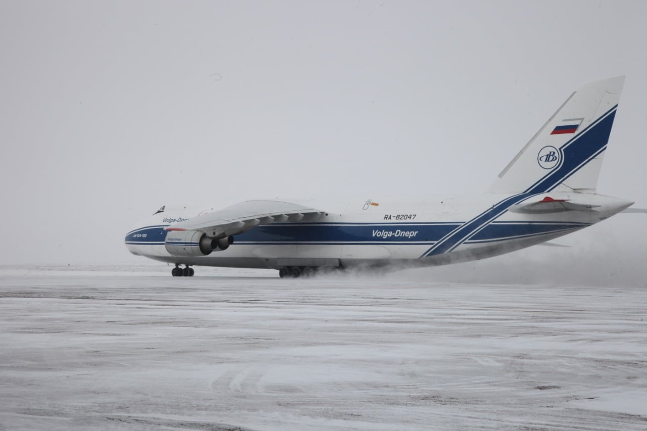 Landung der RA-82047 bei ordentlichem Winterwetter in Kraynyi
