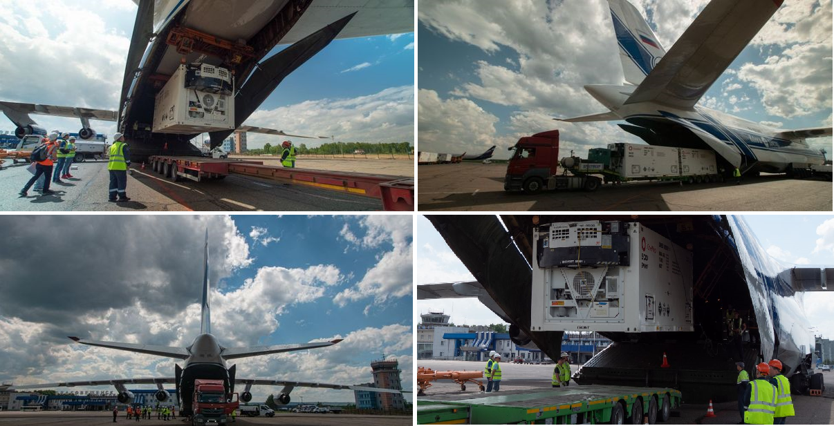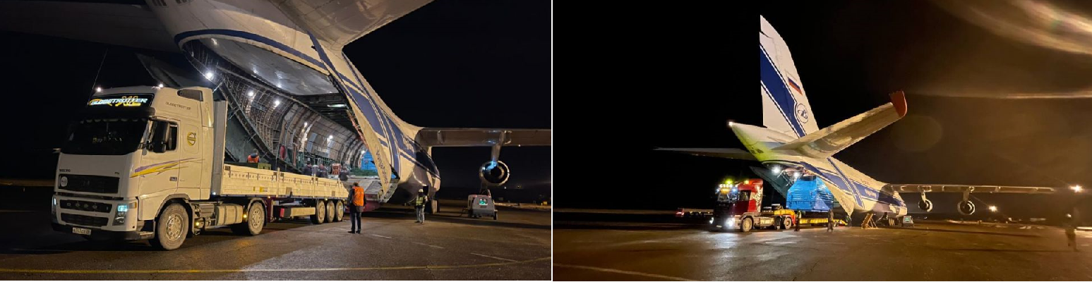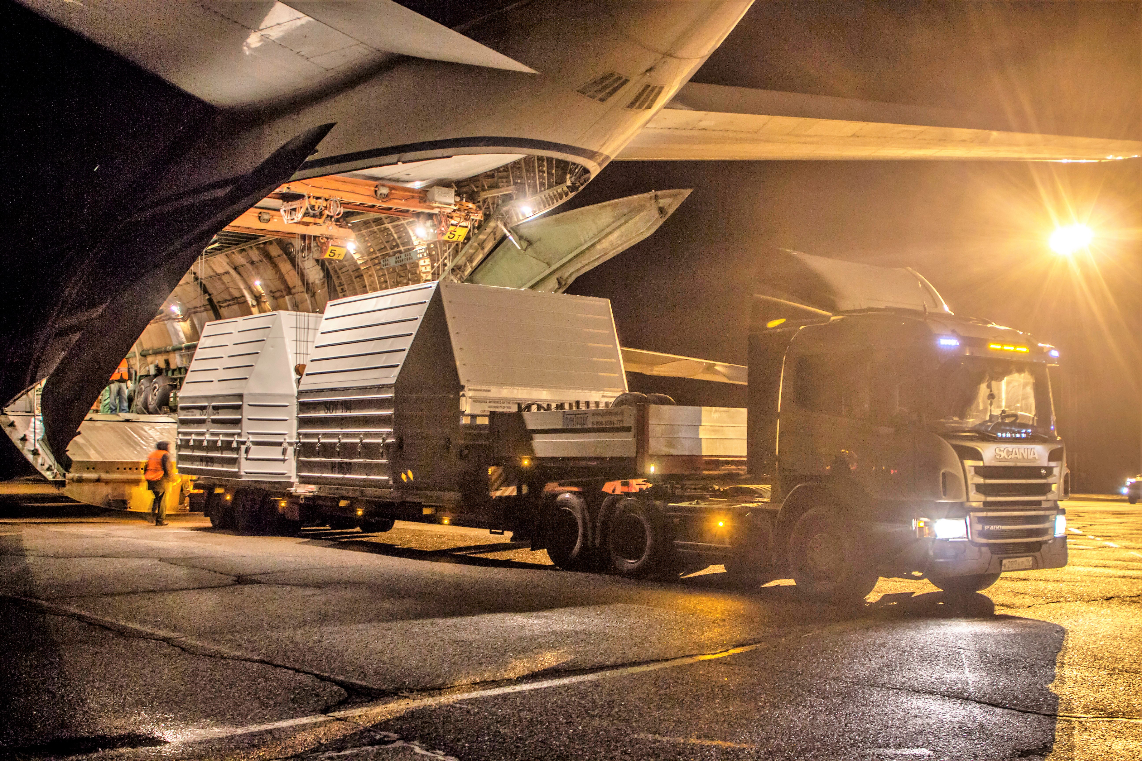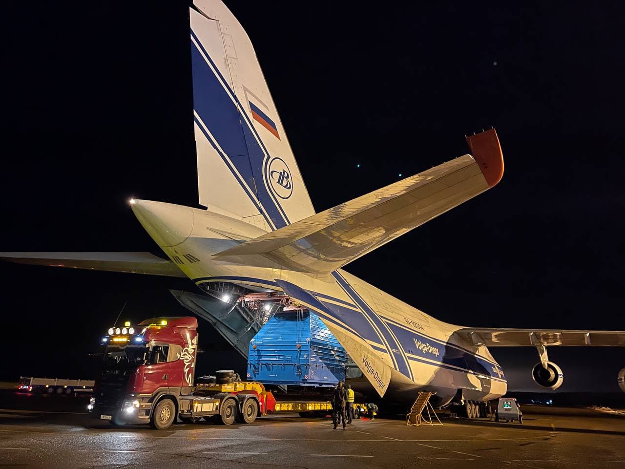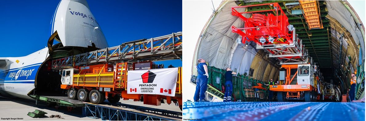 - Eine 5 Tage Operation von Calgary (Kanada) nach Muscat (Oman) an Bord eines der modernisierten An-124-150 der V-D Group für zwei Stück der Geräte mit ~ 120 t.