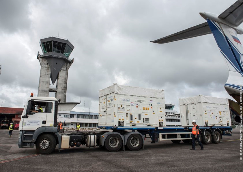 Die Satelliten selbst sind in Kourou schon angekommen, wie der ArianeSpace CEO Stéphane Israel (@arianespaceceo) getwittert hat: https://twitter.com/arianespaceceo/stat ... 3195119616