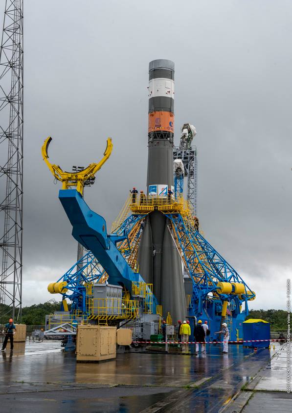 Deswegen in der Tass heute mit Meldung/Paris, daß die Sojus 2-ST (Tropenvariante) für die Mission VS 18 zum RollOut in den Montageturm bereitgestellt ist.